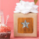 A silver chrome like star applique design on a teak wood style background decor. A racy modern nautical skin gift.