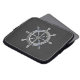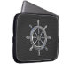 A nautical wheel design on a black carbon fibre style background decor. A racy modern nautical device skin gift.