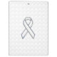 A silver chrome style white ribbon awareness in white on white subtle checkers decor on a custom gift to suit any event or occasions. Edit this design with some text if you wish and see your creative efforts come to reality.