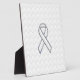 Chrome White Ribbon Awareness on Checkers Print Plaque