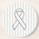 Chrome White Ribbon Awareness on Vertical Stripes Coaster