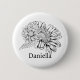 Chrysanthemum Black Line Drawing with Your Name 6 Cm Round Badge