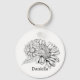 Chrysanthemum Black Line Drawing with Your Name Key Ring