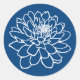 Chrysanthemum Drawing - White on Indigo Style Blue Classic Round Sticker