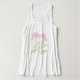 Chrysanthemum flowers graphic drawing outline in light pink, with flat graphic pink flowers and fresh green flat graphic leaves, graphic t-shirt print. Original drawing and graphic treatment by Sarah Trett. www.sarahtrett.com for www.mylittleeden.com