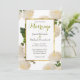 This romantic wedding invitation features a pattern of vintage illustrated chrysanthemums and a faux gold foil accent border.