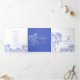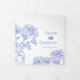 Botanical outline graphic drawing of chrysanthemum blue and white on a personalised wedding square wedding program. Customise with your own bride and groom's name and wedding date, wedding ceremony, love story, wedding party and thank yous plus three of your own photos, one full page centre and two on your wedding story page. Perfect for a blue coloured or fall purple wedding. Design features a print of graphic outline drawing of chrysanthemum flowers by Sarah Trett for www.mylittleedenweddings.com only on available on zazzle.