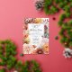 Elegant chrysanthemums and peonies floral design "90th Birthday Party" featuring a floral frame of mums and peony flowers in burgundy, burnt orange, apricot and pink on a white background centre panel. Beautiful rose gold real foil text. Back design features a multi-layered coordinating colours watercolor background