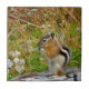Chubby cute chipmunk on on wood stump tile
