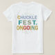 This t-shirt design features the phrase "Chuckle Fest Ongoing" in a burst of multicolour. Each letter is a different vibrant shade, creating a fun and energetic look. The text is bold and playful, perfect for anyone who wants to spread a little laughter.