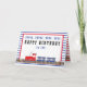 Modern, fun steam locomotive choo choo train striped "Chuga, Chuga, Choo, Choo Happy Birthday to You" birthday wishes design for any age child. The design is complimented on front with a blue and white striped background and a red and white striped background inside. A custom message is included and all that is needed is your signature or your change out the whole message with one of your own. Original design by Holiday Hearts Designs (all rights reserved).