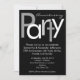 Festive modern anniversary party invitation, customise with any year on back. Fun and cheerful block style lettering in bold high contrast black and white typeface on black background. Sleek contemporary design is perfect for any party invitations. Example shows 25th party, but use any year celebration! Customise online with your event details.