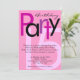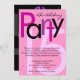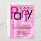 Cute invite for any age or for the 15th birthday girl! Fun and festive chunky letters block style design in shades of fuchsia and purple on a pink background and funky "celebrate" on the back with a black background. Sleek contemporary design is perfect for a girl with class and style. Customise online with details of your event.
