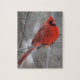 Chunky Bright Red Male Cardinal in Winter Snow Jigsaw Puzzle