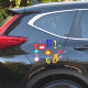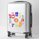 A set of contour cut stickers of the numbers 1 to 12, each number being in a different design and colour. The numbers are all quirky, unusual, colourful and fun. Each number can be peeled off and used separately, so all that is needed is your imagination! You could use them to make a clock. In the centre is a 'freebie' yellow and red star sticker.