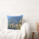 Photo throw pillow cushion with a landscape with the church and the houses of the small village of Hallstatt in Austria, with reflection in the still water of Hallstatt lake and in the background the Alps mountains on a beautiful clear sky summer day.