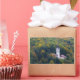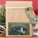 Rectangular photo sticker of a church surrounded by trees in a forest in fall colours on the hills around Bled Lake in Slovenia in autumn.