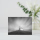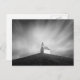 Photo postcard of a small church or chapel on a hill under motion-blurred clouds in the sky in black and white creating a very strong conceptual image of keeping faith in rough times.