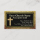 A classy touch of gold and black Your Church Name business cards for Pastor, Priest, Deacon, and other Clergy. It is designed with an elegant gold glitter cross/metallic golden background and a modern black border. #Christian #Catholic