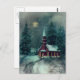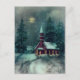 Beautiful Snow Covered Church in the winter moonlight. Vintage Art Postcard.