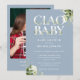 Ciao Baby Greenery Photo Dusty Blue Baby Shower Invitation