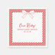 Set the tone for a chic Italian-inspired baby shower with this charming Ciao Baby! themed napkins. Featuring a classic red gingham border, delicate ribbon bow illustration, and elegant script typography, this design channels effortless European café style with a playful twist.