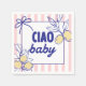 Ciao, BABY! Celebrate your summer baby shower in style with our fun, pink, whimsical la dolce vita Mediterranean-inspired baby shower disposable napkins.