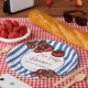Ciao baby Little tomato blue stripes Italian baby shower personalized paper plates template, farmers market baby shower printed paper plates, Italian baby shower personalized table decor, cherry tomato baby shower paper plates, hand drawn tomatoes , grand millennial baby shower party supplies