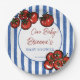 Ciao baby tomato blue stripes Italian baby shower Paper Plate