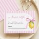 A charming diaper raffle insert featuring soft pink stripes and watercolor lemon artwork, adding a fun and practical touch to your baby shower.