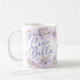Ciao Bella Personalised Lavender Pink Lilies Mug. Ciao Bella is Italian for "Hello Beautiful". This gorgeous new white mug features a flowing lavender script surrounded by lovely watercolor lilies in shades of lavender and pink. The centre area of the mug (between the right and left sides) is personalised. This is a great gift for mother's day, birthday, or Easter!