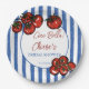 Ciao baby Little tomato blue stripes Italian bridal shower personalized paper plates template, farmers market bridal shower printed paper plates, Italian bridal shower personalized table decor, cherry tomato bridal shower paper plates, hand drawn tomatoes , grand millennial bridal shower party supplies