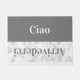 Simple text design in Italian in gray and white /white marble look .Ciao - this is the famous Italian way to say Hello and Arrivederci is to say Good-bye .Modern design by lumirala .