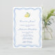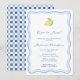 This Bridal Shower party design is part of a new collection based around ever popular lemons, this time with a hand-drawn feel and incorporating a handwriting font and doodle-style wavy border. On the reverse is a trendy geometric square repeat print in pale blue, cobalt blue, light yellow and white with a single lemon.
