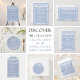 The soft blue background paired with intricate white lace-style details creates a refined yet festive look. Ideal for dessert tables, drink stations, cake tables, or place settings.