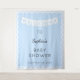 This cute and modern Cielito Lindo baby shower welcome backdrop tapestry features a baby blue background with a delicate white Talavera border frame and a cute Papel Picado bunting banner. You can personalise this design by clicking on "Personalise this template" or if you wish to change the font, colours or arrange the design elements in a different way you can click on "Edit using Design Tool".