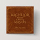 Pin down some style for the groom's last hurrah with this square bachelor party button featuring a rich rust background, golden lettering, and elegant tobacco leaf and saffron-toned botanical illustrations. A perfect accessory for cigar bar nights, whiskey lounges, or elevated party themes.