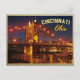 A night view of a suspension bridge over the Ohio River in Cincinnati.