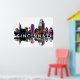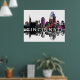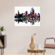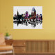 This artwork featuring the city of Cincinnati, Ohio covered in graffiti, has a black ink reflection of the skyline.