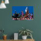 The city of Cincinnati, Ohio covered in graffiti, featuring iconic buildings found in the city skyline. Chose a different background colour in the custom section for a day or night time look.