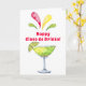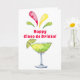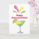 This playful Cinco de Mayo card features a watercolor design with a festive lime margarita and the saying "Happy Cinco de Drinko." The inside has a margarita drink. Colours include red, green and yellow.