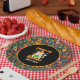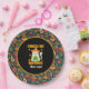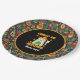 A cute kitty celebrating Cinco de Mayo day with maracas, and a sombrero with a text saying Cinco de Meowo. A perfect fiesta paper plate for the Cinco de Mayo fiesta.