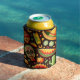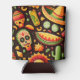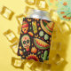 Cinco de Mayo. Mexican bright scull cartoon pattern Can Coolers in black red yellow green colours.