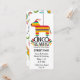 Festive holiday invitation for Cinco de Mayo or any Mexican-themed event a rainbow donkey pinata on one side and Mexican folk art with guitars and peppers on the back.