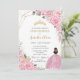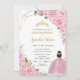 Cincoañera Pink Roses Floral Gold Princess Crown Invitation