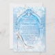 Cinderella birthday party invitations with beautiful glass slipper on a fancy light blue fairy tale background. These Cinderella invitations are easily customised for your event by simply adding your details.