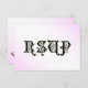 Custom RSVP cards with vintage art of Cinderella's glass slipper on a pink pillow and RSVP on the front in antique letters. Click Customise It to change fonts, invitation sizes, upload your photo, change background colours, even save your design for later.