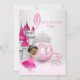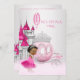 Cinderella birthday party invitation with pink and silver diamond princess carriage and castle background with adorable African American ethnic little girl wearing a pretty pink dress with diamond tiara and pearls. This beautiful ethnic girls any number Cinderella pink and silver once upon a time princess birthday party invitation is easily customised for your event by simply adding your details in the font style and colour, and wording of your choice. This is a printed design with no real glitter, diamonds, pearls, etc.