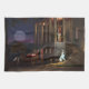 The glass coach waiting for Cinderella in front of the castle, while Cinderella has just lost the glass slipper. Notice the Prince calling from the top of the staircase!