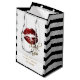 Cinnamon Red Glitter Lips & White Stripes Medium Gift Bag